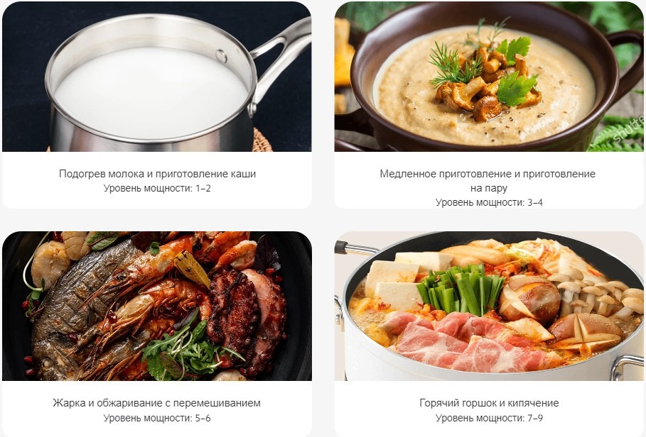 Мощный быстрый нагрев обеспечивает насыщенный вкус блюд при различных способах приготовления, таких как тушение и жарка.