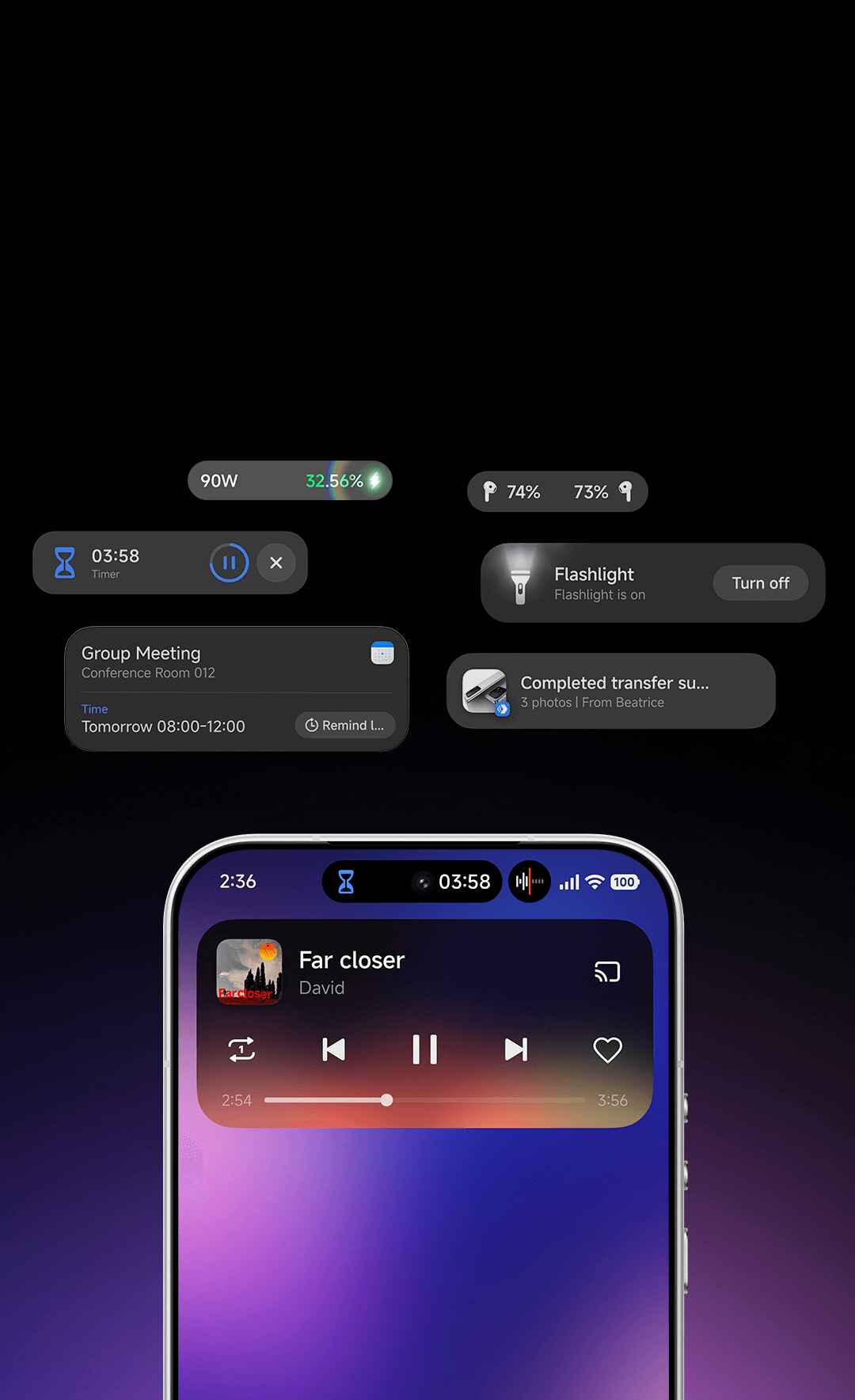 18. Xiaomi HyperIsland в настоящее время доступен в отдельных приложениях. Доступность конкретных функций и сервисов может зависеть от версии ПО, приложений, региона и модели устройства. Пожалуйста, ориентируйтесь на фактические условия использования.